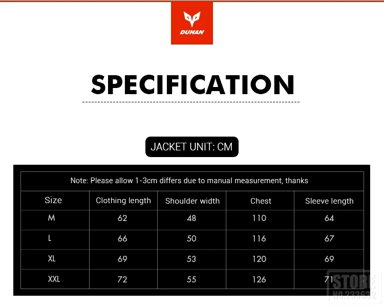 On-time Delivery: If you do not receive your purchase within 60 days, you can ask for a full refund before order completion (when you click "Confirm Order Received" or exceed confirmation timeframe).Hurry! Flash Deal DUHAN Motorcycle Jacket Winter Body Armor Protective Moto Jacket Keep Warm Racing Jacket Motorbike Windproof Jaqueta Clothing