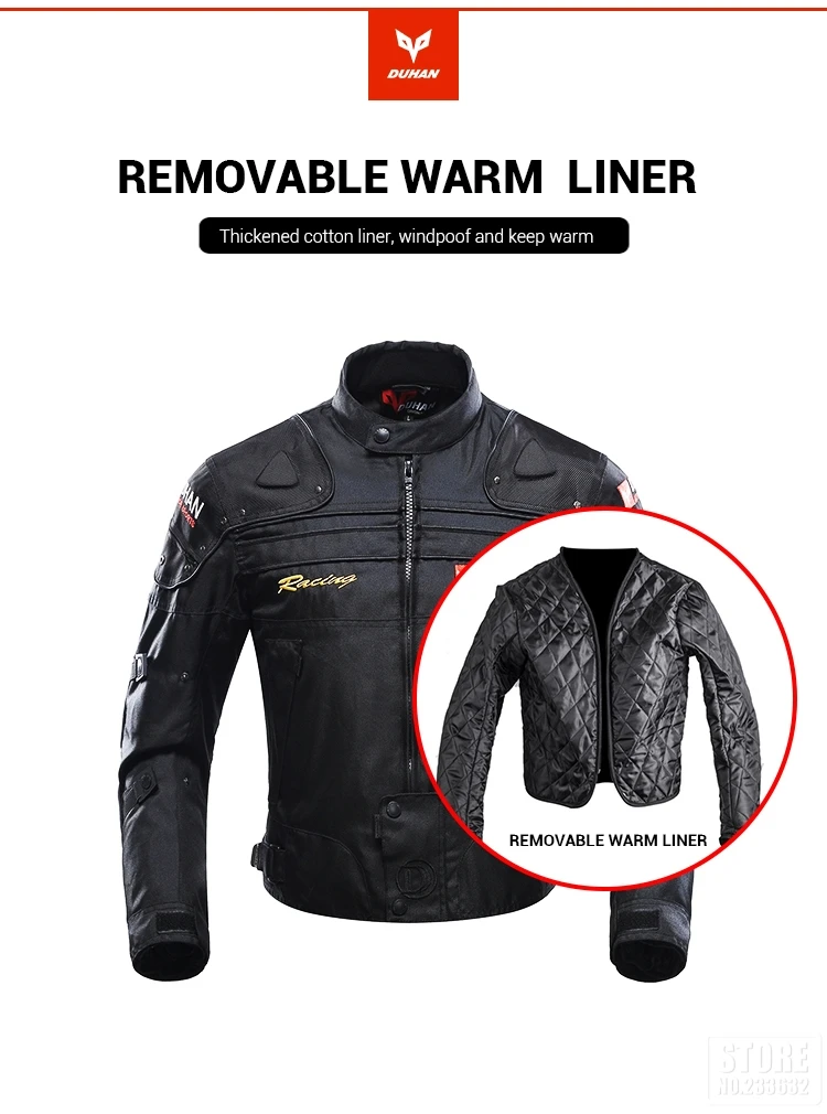 Best Winter High Rating Product provide body armor, duhan motorcycle jacket, protection moto Excellent New DUHAN Motorcycle Jacket Winter Body Armor Protective Moto Jacket Keep Warm Racing Jacket Motorbike Windproof Jaqueta Clothing. Get 45% discount Now! Now US $71.08/piece. Hurry buy Now before back to normal price! Normal price US $129.24. Dont waste your time. Buy Now only in Top-touch Technology Co.,Ltd Trusted Seller Store!