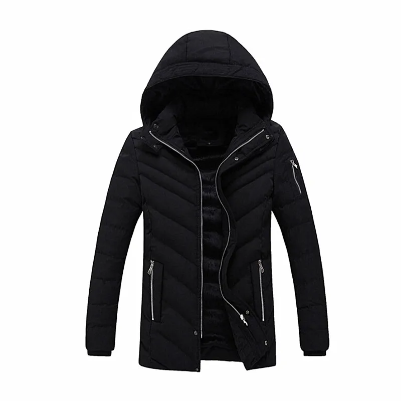 Mens Cotton Padded Warm Solid Winter Hooded Coat Stand Collar Zipper Parka Brand Casual Jacket 2017 jaqueta masculina inverno