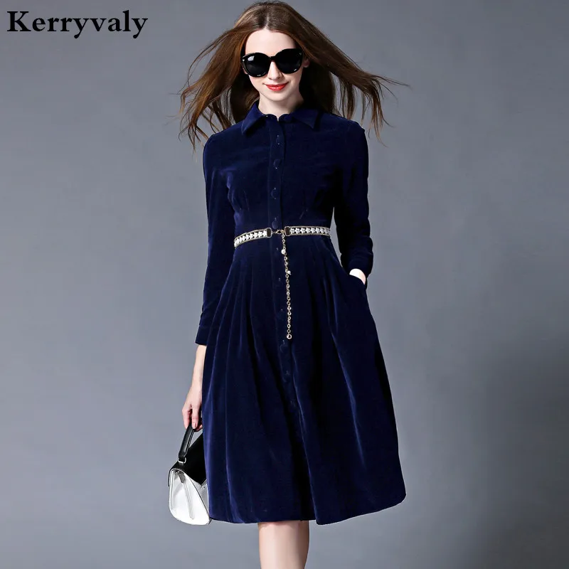 | OL Style Blue Velvet Dress Winter Dresses Women 2018 Vestido Longo Woman Long Sleeve Office Dress Ropa Mujer Robe Longue 732102