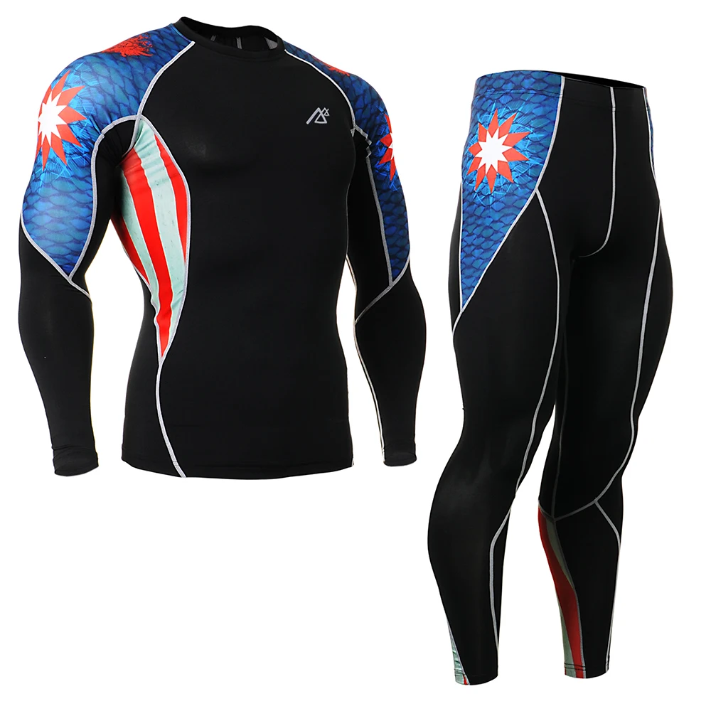 Brand Genuine 4 Way Stretch Mens Sport Suit Compression Tights Running Pants + Long Sleeve Tshirt Captain America C2L_P2L_B37