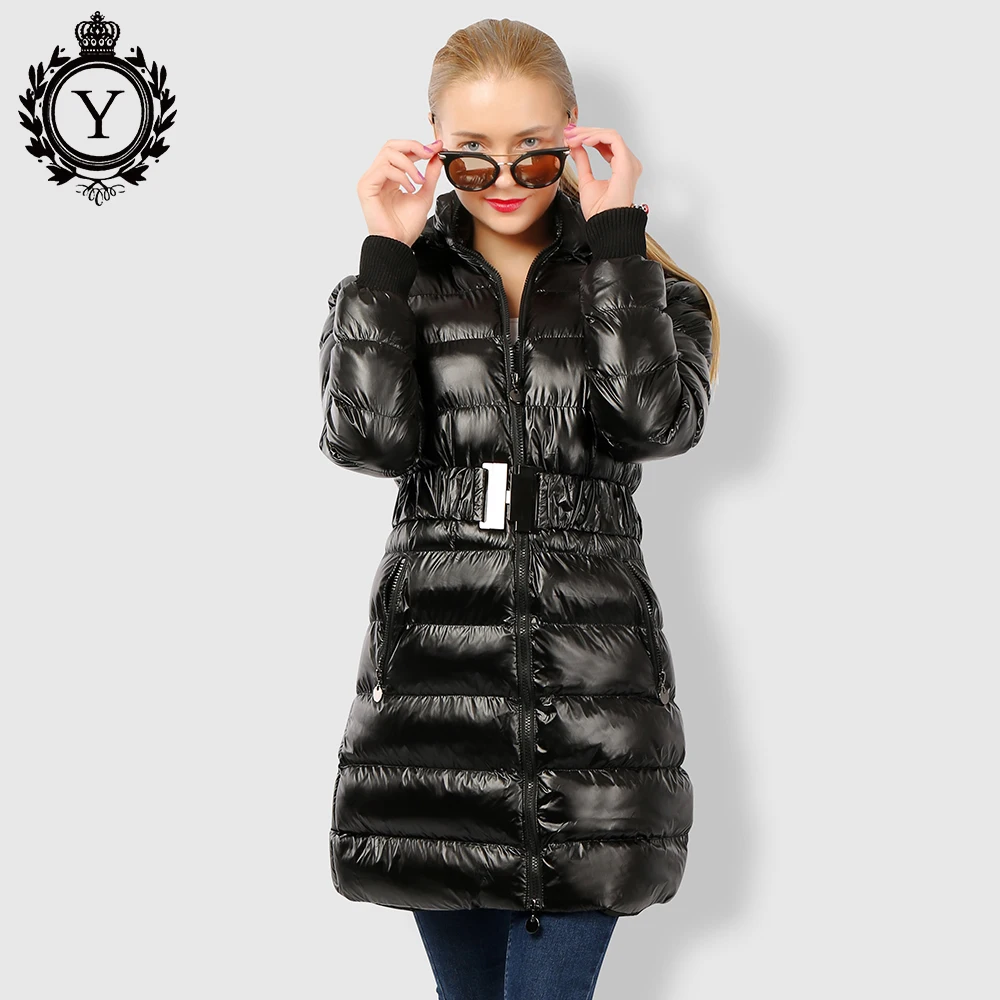COUTUDI 2016 Long Women Clothing Winter Warm Jackets Shiny Solid Black Parkas Cotton Coats Female Waterproof Belt Parka Coats