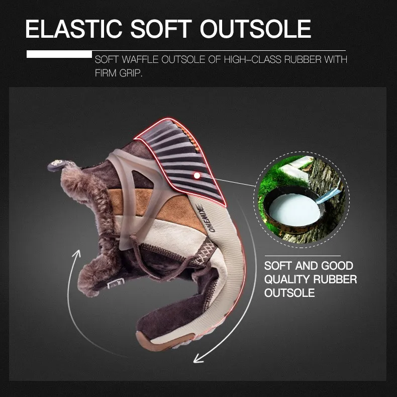 Waterproof vampThe vamp is made of fine soft pigskin and thick microfiber poly urethane which prevent from abrasion, wind, water and coldness.