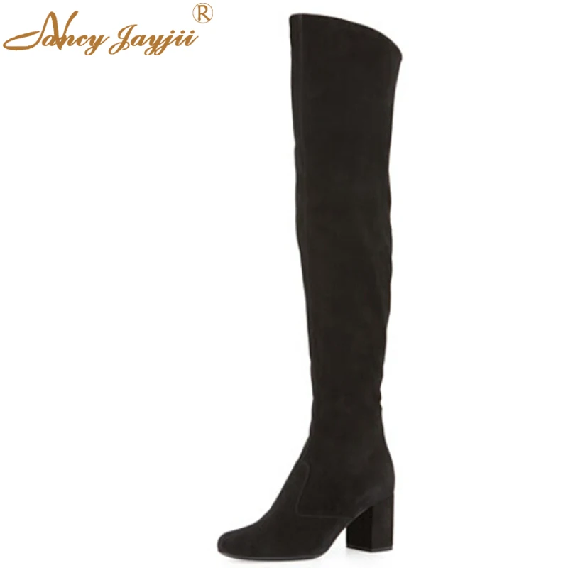 On-time Delivery: If you do not receive your purchase within 60 days, you can ask for a full refund before order completion (when you click "Confirm Order Received" or exceed confirmation timeframe).Big Gift Black Soft Suede Winter Casual Career Round Toe High Heels The Knee High Boots Zapatos Mujer Shoes For Woman Plus Size 4-16