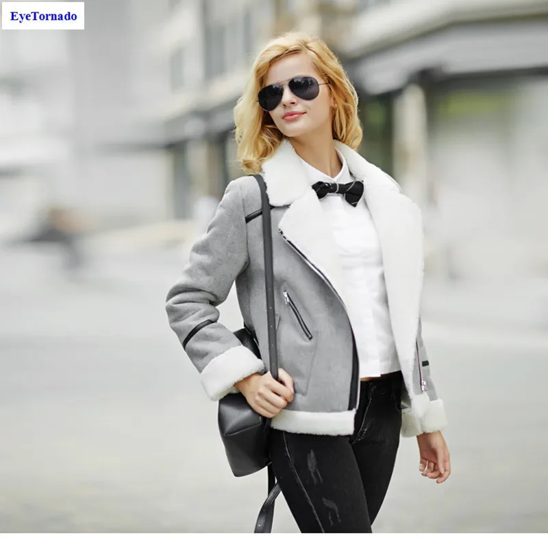 Women cashmere patchwork suede jacket motorcycle biker pilot jackets outwear short casual work winter fashion jackets XXL 7017